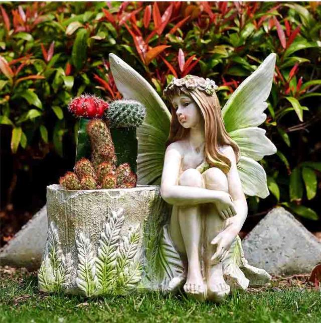 高品質の樹脂で作られた、この屋外の妖精置物は、どんな気象条件でも長持ちするように作られており、庭の彫刻や芝生の装飾品として最適です。