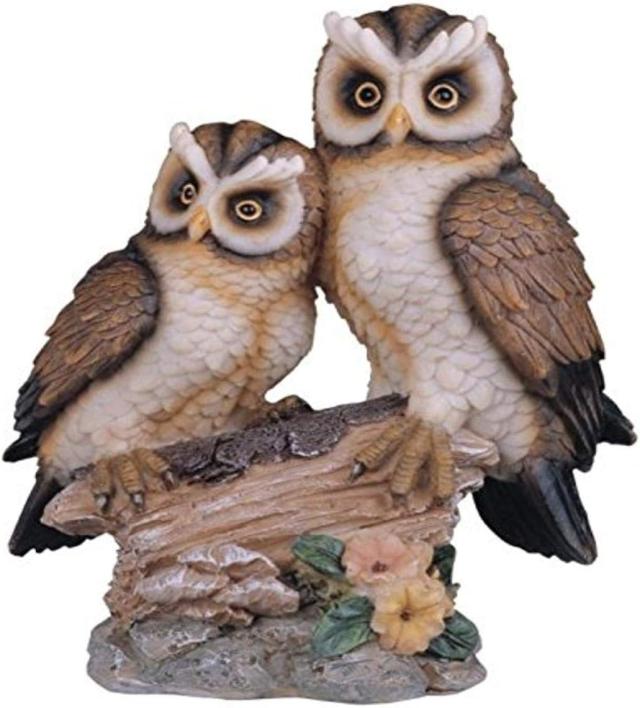この鮮やかな鳥は、色とりどりに飾られた木の切り株にとまる雄大なフクロウを描いています。作品の細部と手描きの色は信じられないほど複雑です。 小さな灰色の斑点がアクセントになった、綿密にデザインされた、黄褐色の羽を持つこのフクロウは、生き生きとして、走り回る野ネズミを、注意深く探しているように見えます。猛禽類の止まり木として機能していた、節くれだった枯れ木の切り株は、曲がりくねった緑の蔓や緑の地衣類の自然の装飾品によって生き返らせられました。コールドキャストレジンから作られた、この絶妙な自然美のディスプレイは、高さ約12.7cm×幅 約7.6cm×奥行 約6.4cmです。 この素晴らしいディスプレイを、ご自宅のカラフルなアクセントとして追加したり、自然愛好家への贈り物として贈ったりしてください。