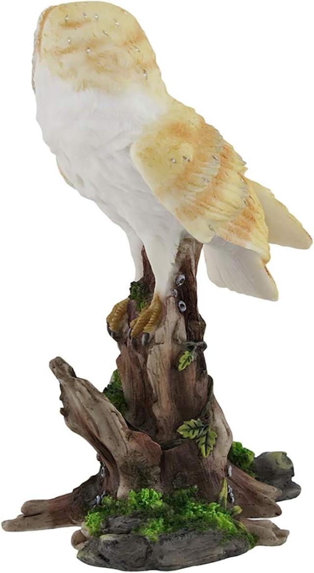 木の切り株に、注意深く止まるメンフクロウ置物彫像 自然動物フィギュア ホームデコ カフェ 贈り物 輸入品