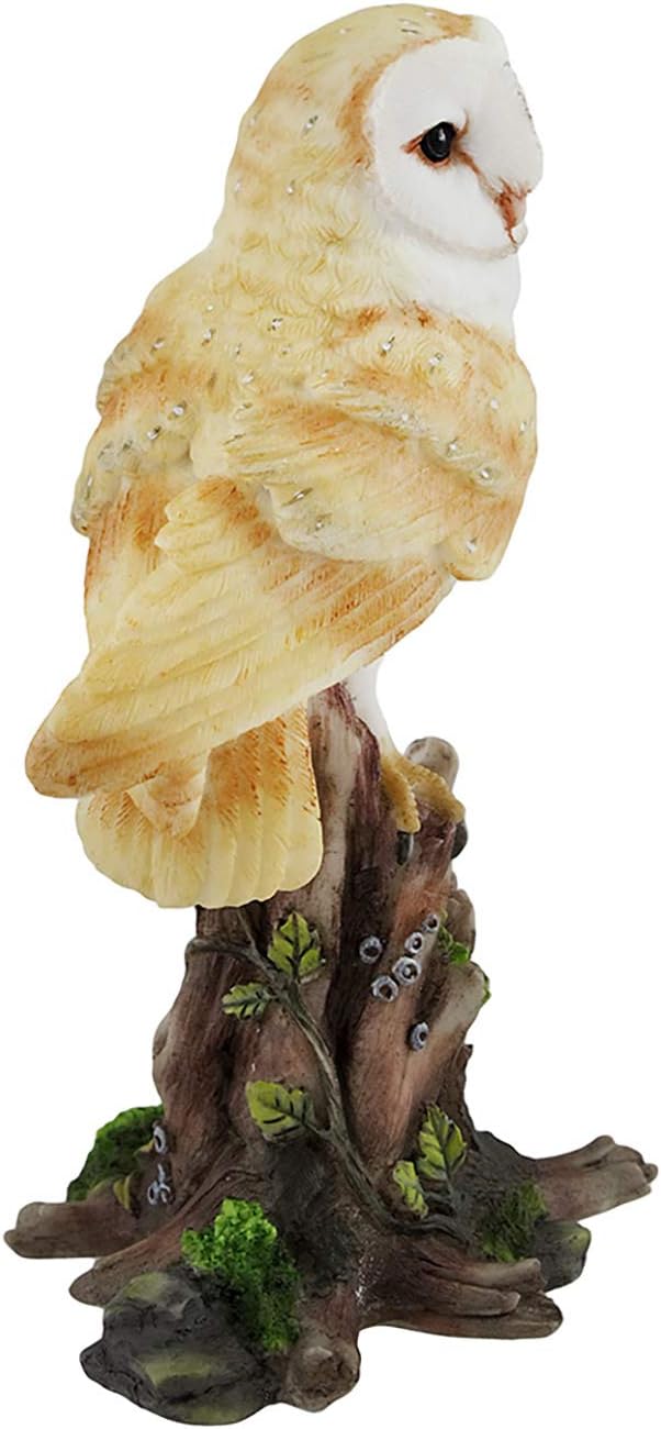 Veronese Design Barn Owl Vigilantly Perched on Tree Stump Statue