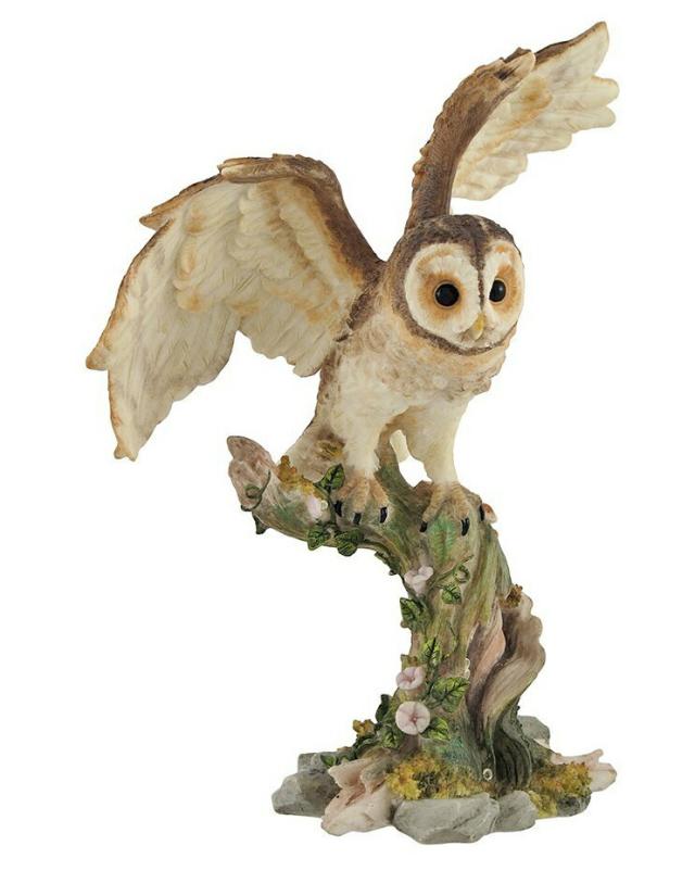 ヴェロネーゼ製 木の切り株に、注意深く止まるメンフクロウ置物彫像 自然動物フィギュアホームデコ コレクション カフェ 贈り物 輸入品
