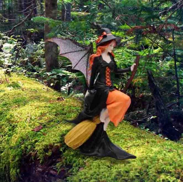 フェアリーランド 魔法のほうきに乗ったダーク・フェアリー魔女の置物彫像ハロウィーン装飾彫刻
