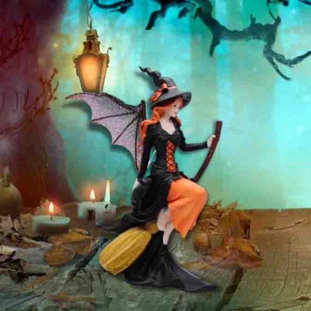 フェアリーランド魔法のほうきに乗ったダーク・フェアリー魔女の彫像 ハロウィーン装飾彫刻 ギフト 贈り物 輸入品