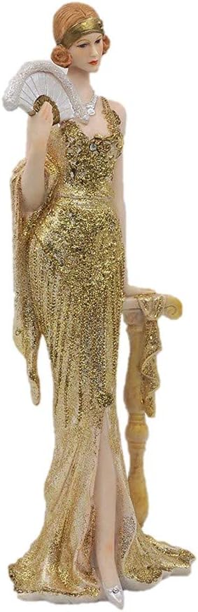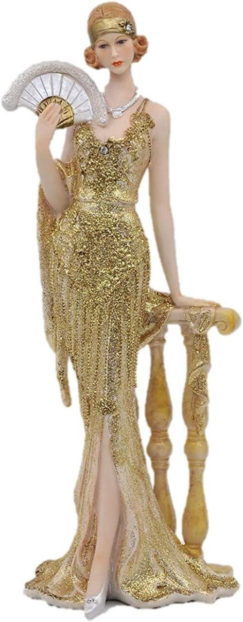 グラマラス エレガンス ビクトリア朝スタイル 扇子を持ったラグジュアリーレディ彫像 ゴールドフィギュア贈り物 輸入品