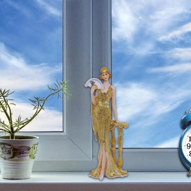 グラマラス エレガンス ビクトリア朝スタイル 扇子を持ったラグジュアリーレディ彫像 ゴールド エレガント コレクション彫像フィギュア 装飾彫刻