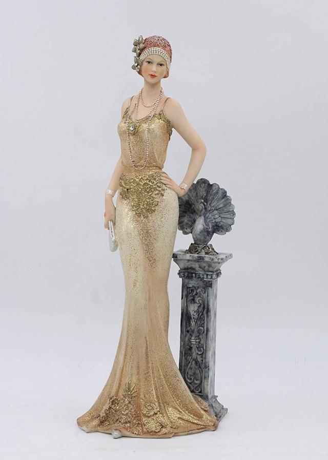グラマラス エレガンス ビクトリア朝スタイル 立っているラグジュアリーレディ彫像フィギュア、ゴールドエレガントコレクション装飾彫刻オーナメント ギフト プレゼント 贈り物 輸入品