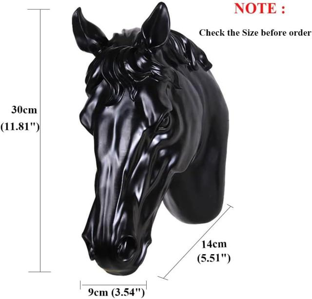 RTGGSEL Retro Faux Horse Wall Mount Simulated Resin Taxidermy Animal Head Ornament Fake Horse Head Sculpture Wall Decor (11.8" X 3.5" X 5.5") (Black Horse)