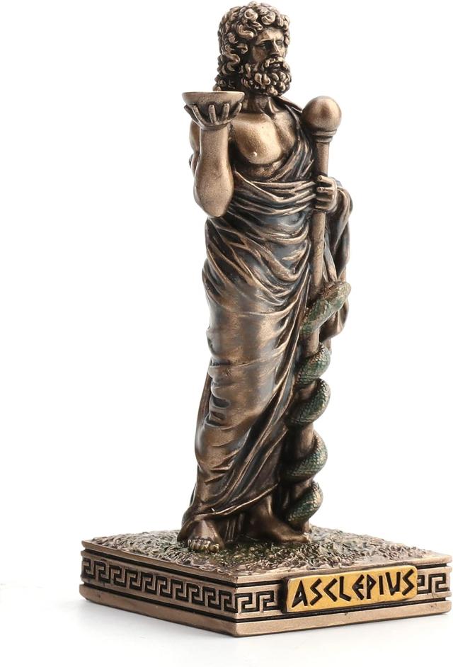 ギリシャの神々ミニチュアフィギュア アスクレピオス彫像 ブロンズ風 アート工芸 医師 病院 医学生 贈り物 輸入品