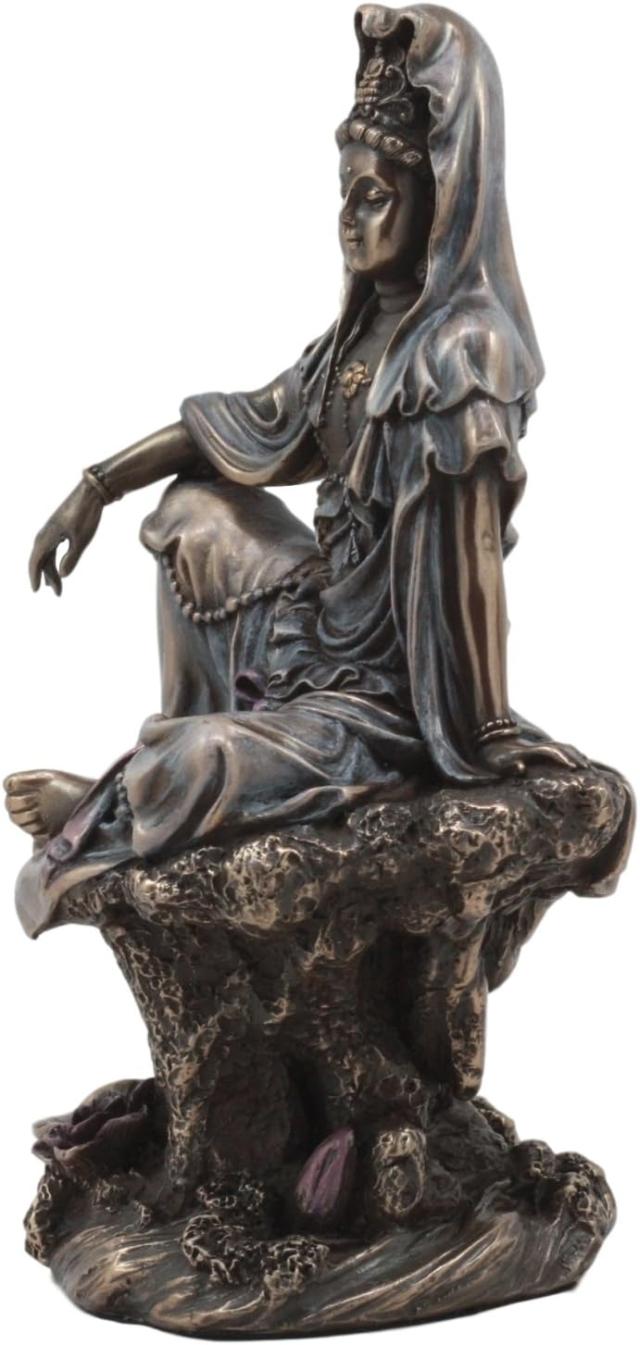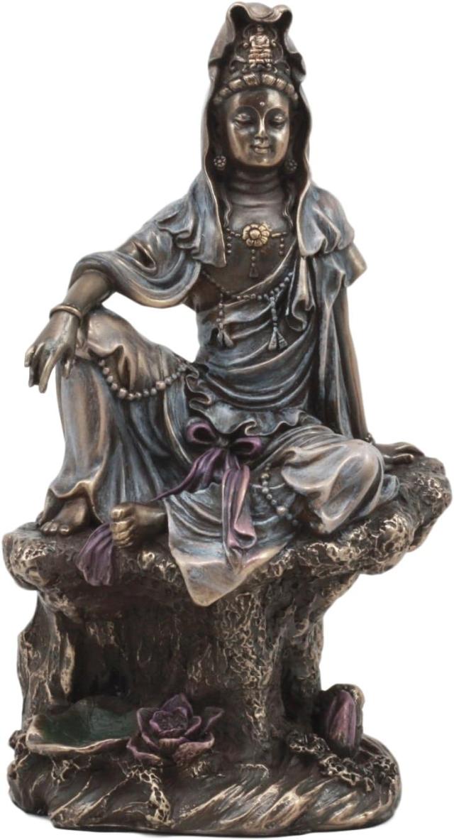 Gifts & Decor Ebros The Water and Moon Goddess Kuan Yin Bodhisattva Statue in Bronze Finish Resin 7" Tall Immortal Deity of Mercy Museum Decorative Altar Figurine