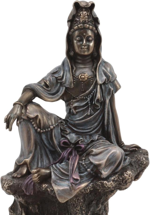 水月観音菩薩ブロンズ風仕上げ彫像高さ約17.8cm不滅の慈悲 仏教工芸彫刻 ガーデン 贈り物 輸入品