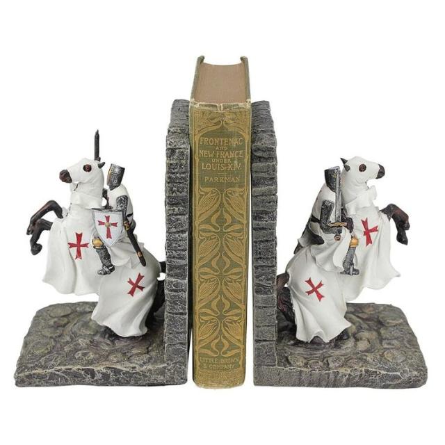 ゴシック様式の要塞の障壁の後ろで本、ディスク、映画を守るために作られた、突進するテンプル騎士団の騎士や強力な牡馬のブックエンドで、古代の文書や現代のメディアに中世風のひねりを加えましょう。高品質のデザイナーレジンで作られた、この仲間の兵士のコミュニティーは、鎧から紋章に至るまでの、細かな仕上げを引き出すために、職人によって個別に手描きされています。