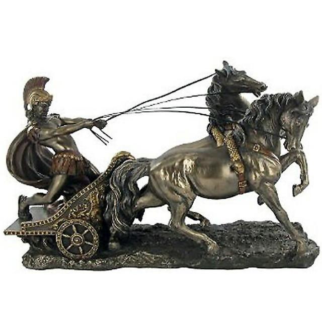 【2頭の馬に引かれローマ時代のチャリオット(戦闘用馬車)ブロンズ風仕上げコロッセオ 円形闘技場 グラディエイター ベンハー 皇帝 プレゼント 贈り物輸入品