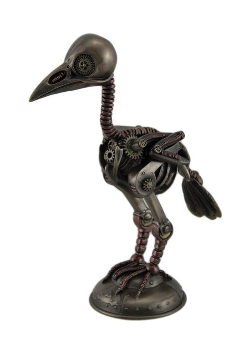 スチームパンク風 クロウ(烏、カラス)スケルトン骸骨 アンティークブロンズ風仕上げ 彫像
