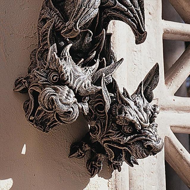 西洋彫刻 双頭のドラゴン彫像 ガーゴイル 壁掛けディスプレイ/ 中世ヨーロッパ 教会 守護モンスター お庭 ガーデニング プレゼント(輸入品)