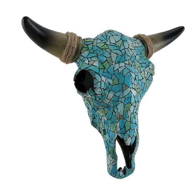 【(牡牛) 頭蓋骨の壁掛け モザイク ターコイズ スティア彫像/ 焼き肉店 ジンギスカン牧場乳牛 エスニックレストラン プレゼント(輸入品)】