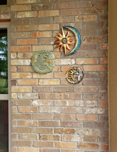 レッド・クラック・モザイク・クレセント・ムーン&サン ウォールデコレーション 赤いモザイクの三日月と太陽 彫刻 彫像