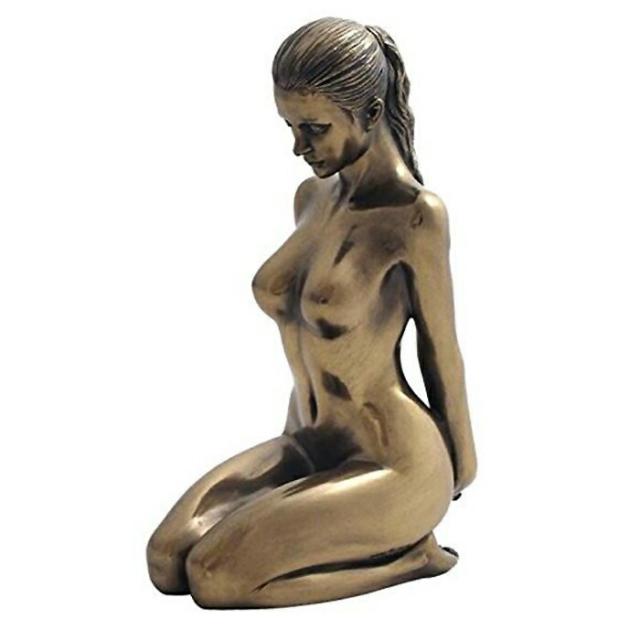 【5.88 Inch Nude Female Statue Kneeling with Hands on Back, Bronze Color】