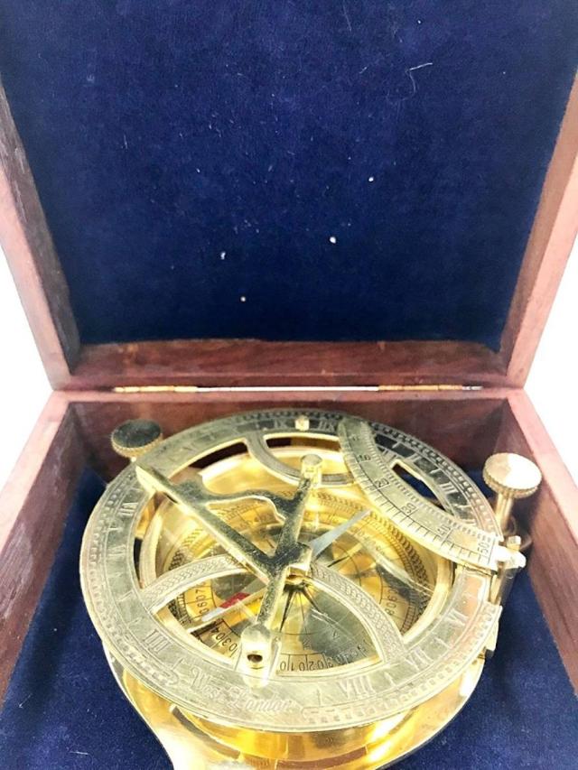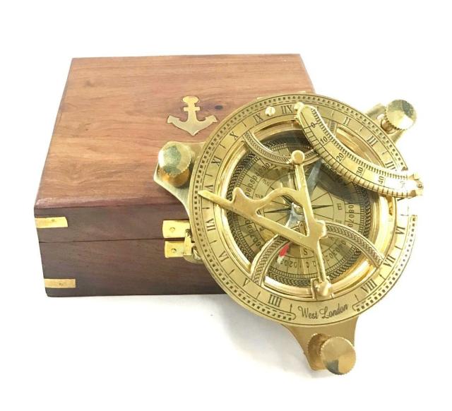 【Solid Brass 4" Sundial Compass - with Wooden Box】