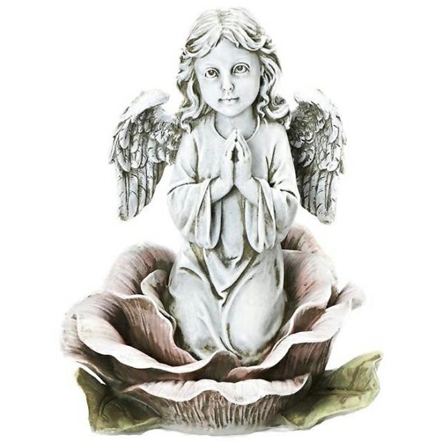 Roman Josephs Studio Religious Praying AngelKneeling in Pink Rose Outdoor Garden Statue, 11-Inch
