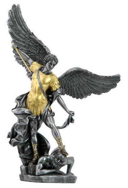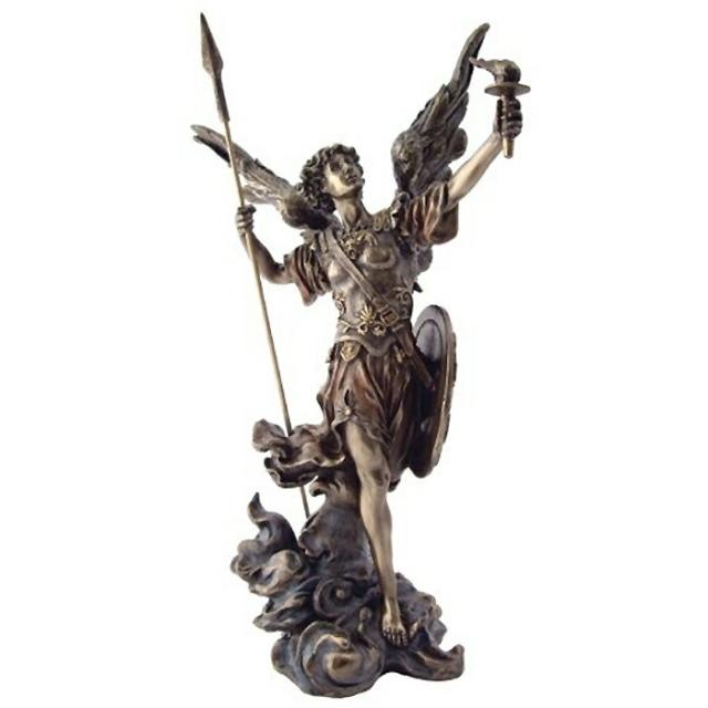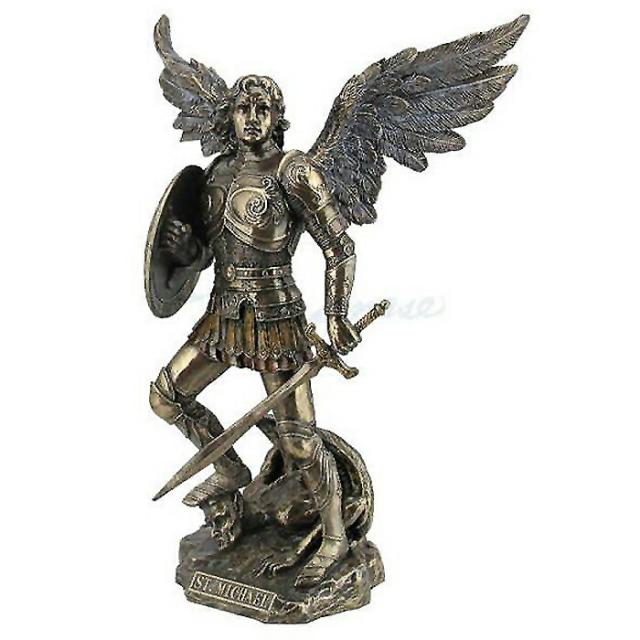 剣と盾 を持ち 悪魔を踏みつける 守護天使ミカエル ブロンズ風 彫像 彫刻(輸入品)