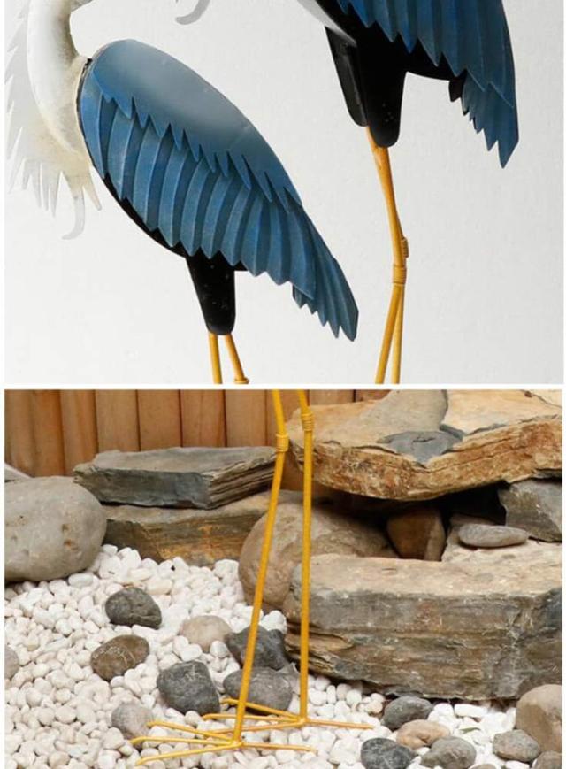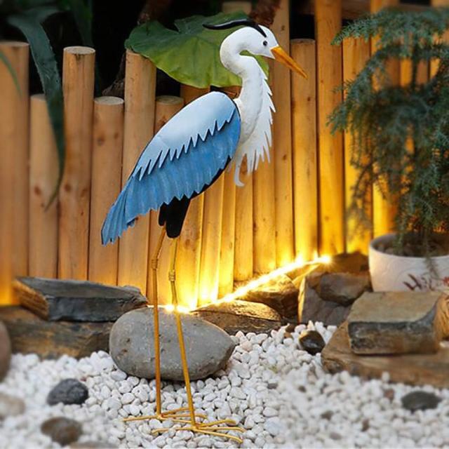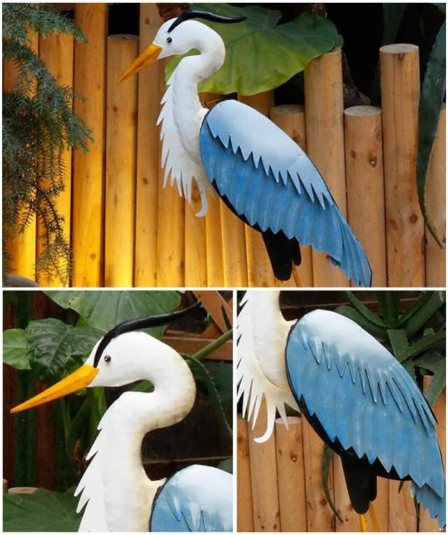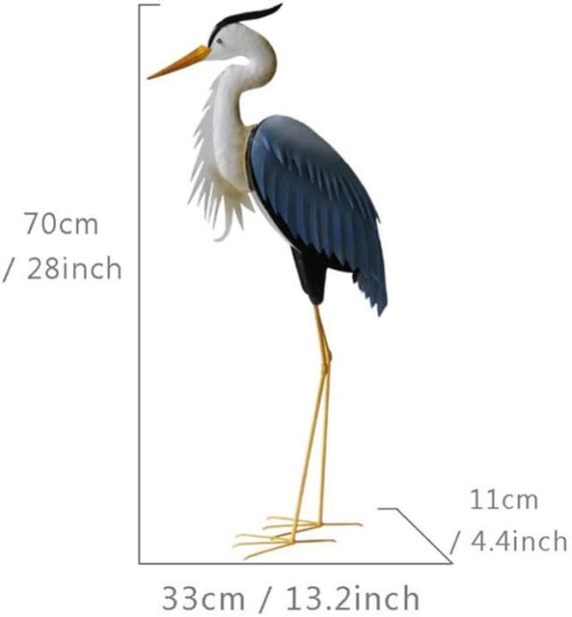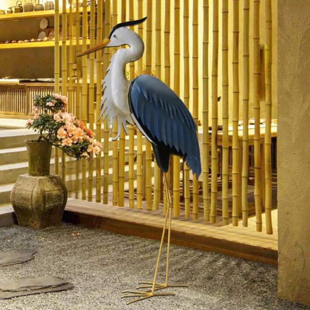 特徴的な金属製のアオサギ鳥の彫像は、両面に立体的な特徴があります。
