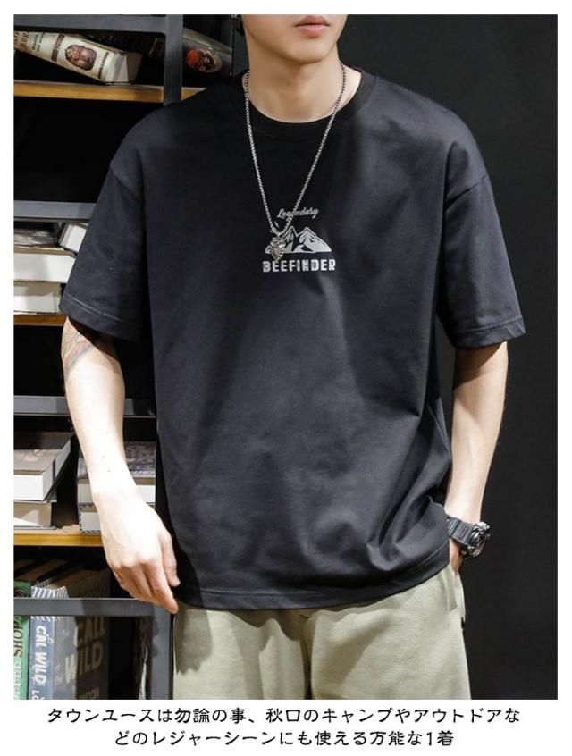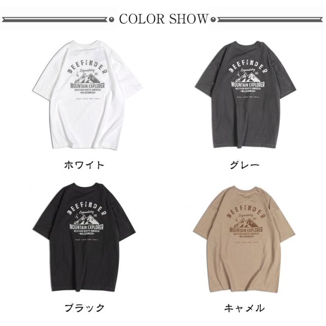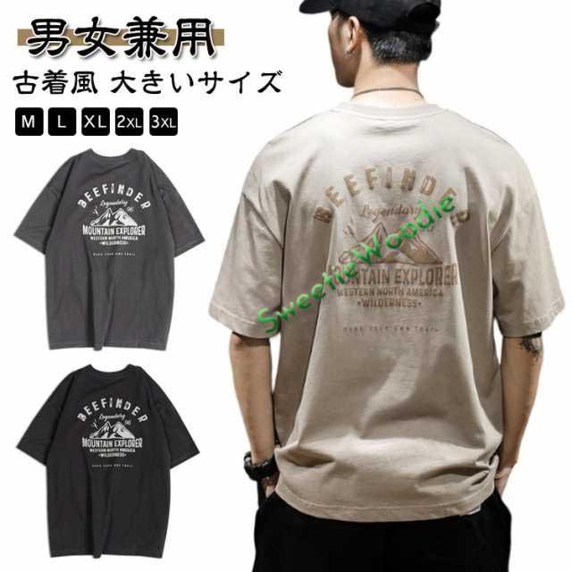 山 送料無料 半袖 メンズ 古着風 アメカジ バックプリント tシャツ レディース ストリート カットソー トップス 英字 送料無料 プリント レトロ カジュアル 大人 オーバーサイズ 大きいサイズ グレー 白 黒