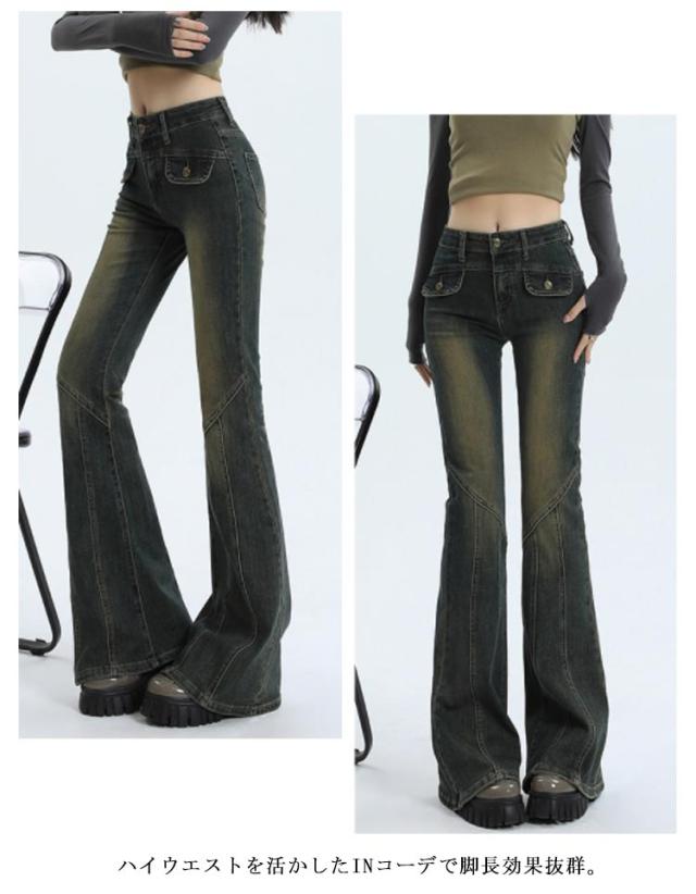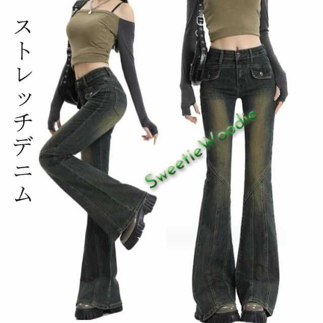 デニム レディース レディースパンツ フレア フレア 脚長パンツ フレアパンツ ベルボトム デニムパンツ デニムパンツ カットオフ スーパーストレッチ ブーツカット フレア ジーンズ 20代 30代 40代