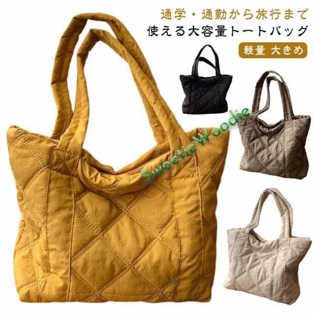 | 通学・通勤から旅行まで使える大容量トートバッグ 持ち歩きたいものをまとめて入れられる軽量トートバッグA4サイズの書類や、化粧ポーチなど大きめな荷物をマチが広く入れやすく便利に使えます。 収納しやすいマチ付き、インナーポケット付き 長めの持ち手で肩掛けOK 楽ちん開け閉めマグネットでカチッと留めて中身が見えにくく安心 柔らかな立体感のあるキルティング生地カジュアルな印象を与えてくれる中綿入りの素材。 | |