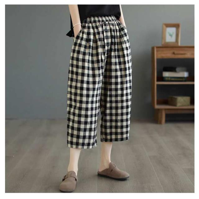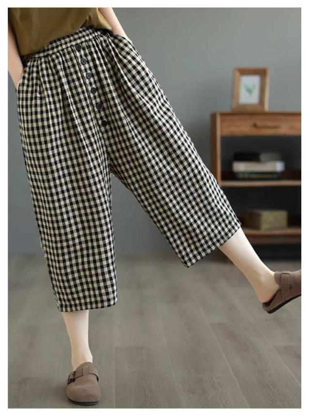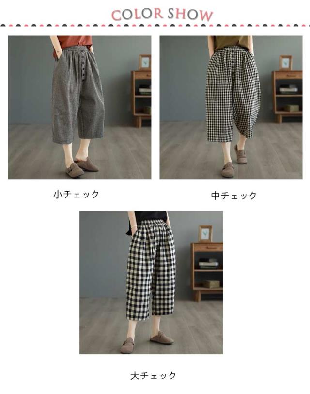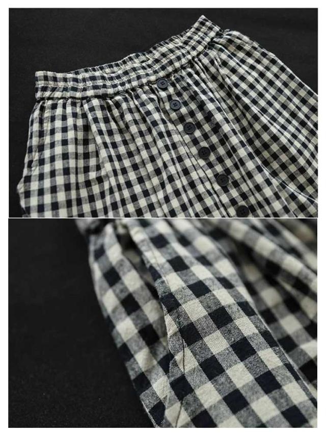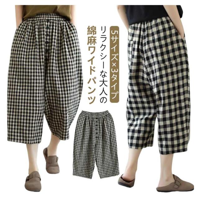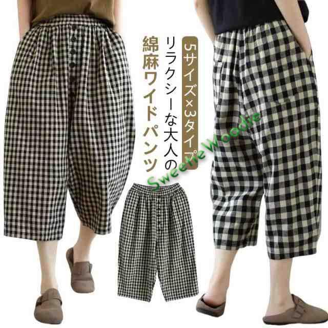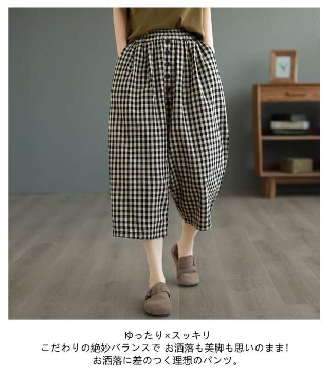サルエルパンツ コクーン 夏 チェック柄 バルーンパンツ 綿麻 低身長 パンツ バルーン ギンガム 大きいサイズ コットンリネン カジュアルパンツ ウエストゴム チェックパンツ おしゃれ イージーパンツ ゆったり 体型カバー バルーンパンツ 春 夏 秋
