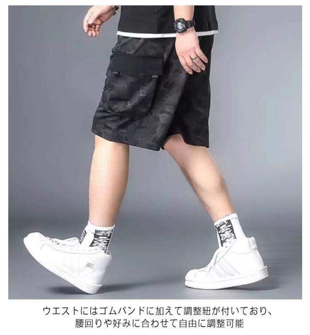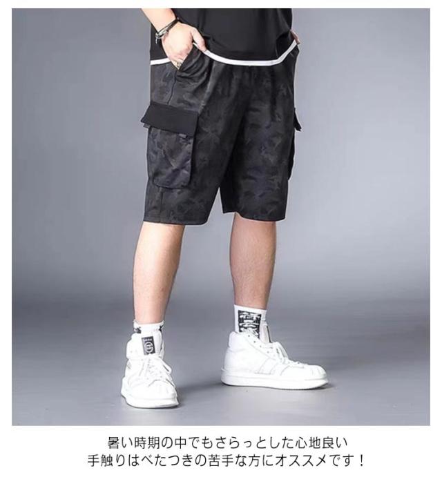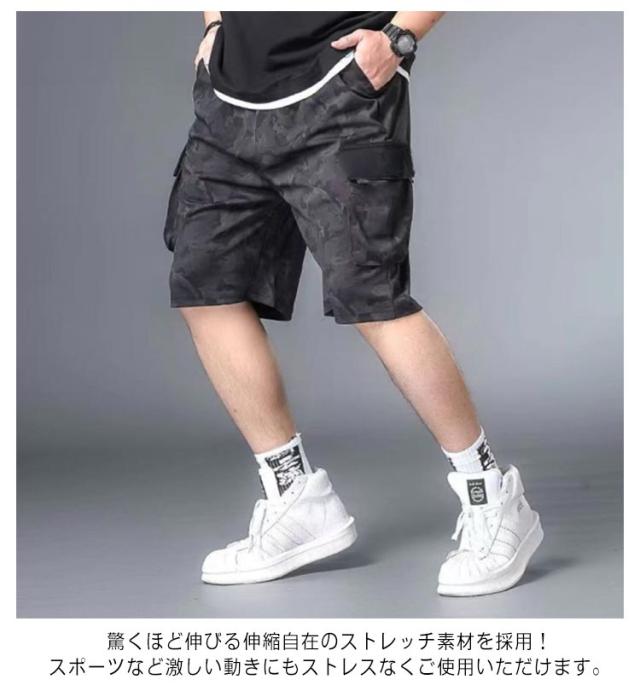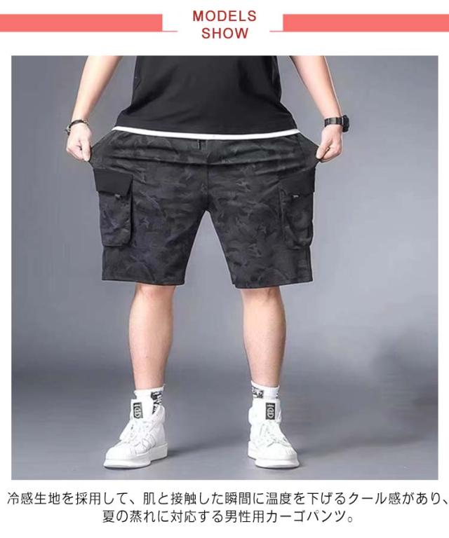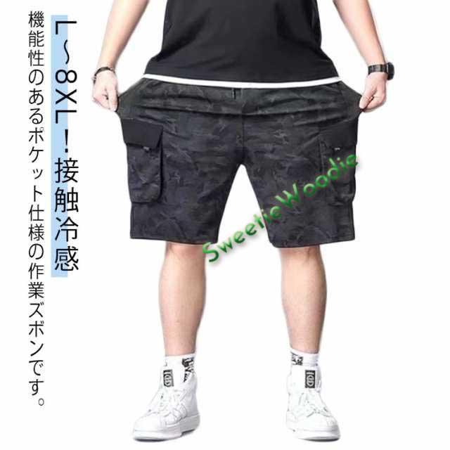 作業着 半ズボン 無地 ハーフパンツ ゆったり 薄手 メンズ 夏 迷彩 カーゴパンツ ひんやり L?8XL!接触冷感 冷感パンツ スリム 美脚 6ポケット ウエストゴム カジュアルパンツ ワイドパンツ 涼しい おしゃれ 大きいサイズ