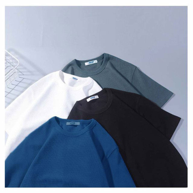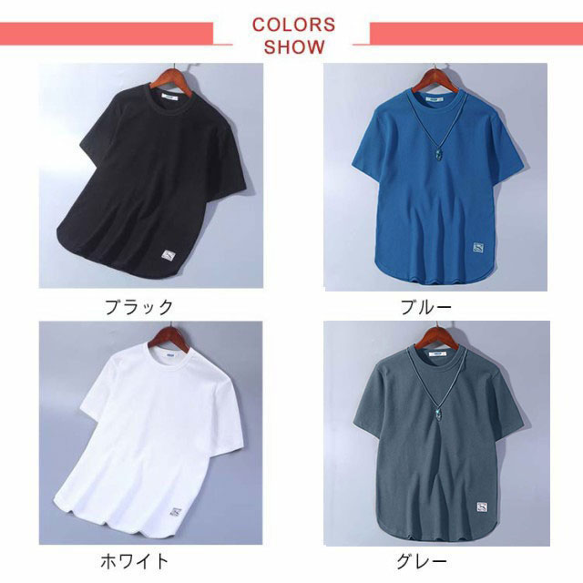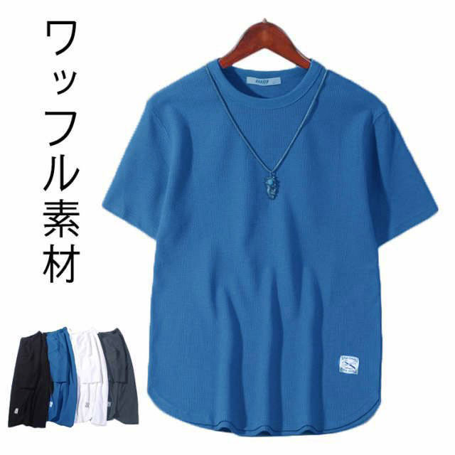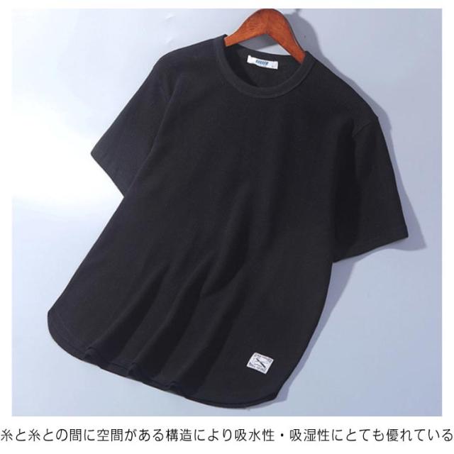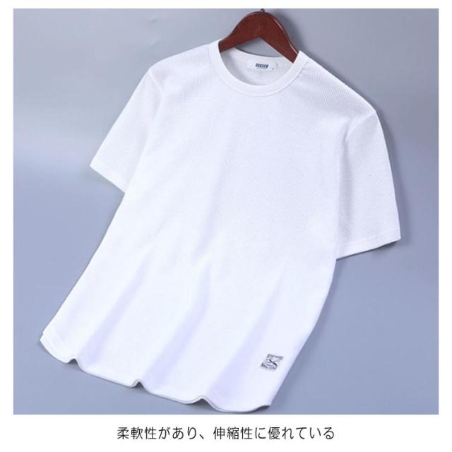 くすみカラー メンズ Tシャツ カットソー クルーネック 送料無料 ワッフル ティーシャツ半袖 吸水速乾 機能性素材 速乾 サーマル ロゴ付き 無地 夏物 夏服 ワッフル