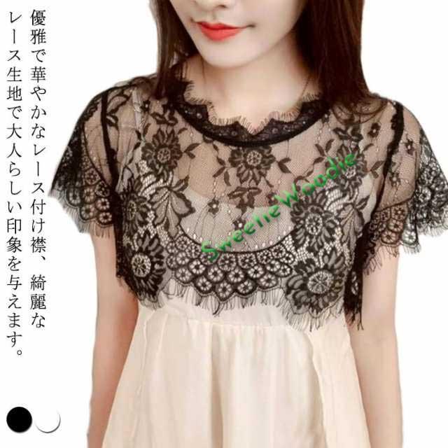 つけ襟 レディース 黒 ブラウス 花レース 丸襟 母の日 ブラック ホワイト ファッション小物 シャツ 重ね着風 発表会 結婚式 エレガント オールシーズン 20代 30代 40代 50代 付け襟