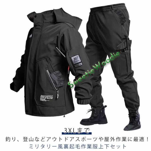 | 釣り、登山などアウトドアスポーツや屋外作業に最適!ミリタリー風裏起毛作業服上下セット。【3XLまで】 裏面優しい肌触りが特徴のボアフリースが使われているので風邪を通さず、保温性も兼ね揃えたアイテムに仕上げられております。 撥水加工で水を弾き、防風機能を備え生地からの冷たい風の侵入も防ぎます。 実用性の高いポケットがたくさん完備、手ぶらでお散歩なども◎ これからの季節の通学・通勤に最適な防水・防寒スーツセット、トレッキング、釣り、登山、山ガール、ウォーキング、バイクツーリング、キャンプ、サイクリング、ゴルフなど、様々なアウトドアシーンも着用できます。 | |