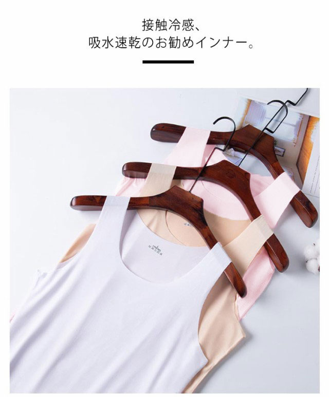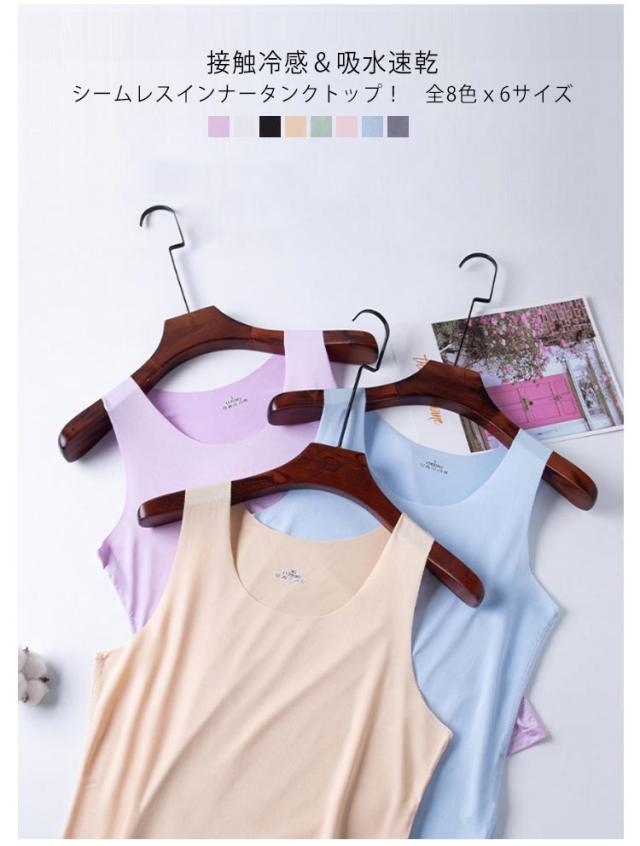 | 3枚セット! まるですべ肌、薄手のシームレス素材で、着ていないかのような感覚の肌着です。 接触冷感&吸水速乾シームレスインナータンクトップ! 全8色x6サイズ 汗をかいてもベタつきにくく、サラッと滑らか、薄くて軽いので 肌に優しい付け心地 接触冷感、吸水速乾のお勧めインナー。 トップスやTシャツ カットソー、チユニックなどのインナーに♪ 締め付け感が少なく、軽く、ラインがアウターに響きにくい使用にしております。 | |