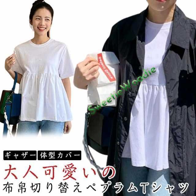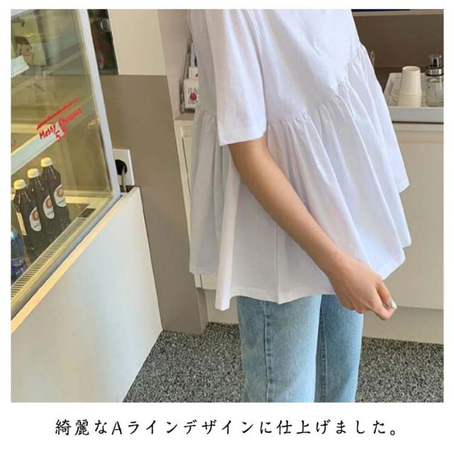 バックペプラム tシャツ 半袖 レディース シンプル 春 夏 無地 ブラウス バックフリル ペプラム トップス Aライン カジュアル きれいめ カットソー 体型カバー ゆったり ギャザー ラウンドネック クルーネック 丸首 白