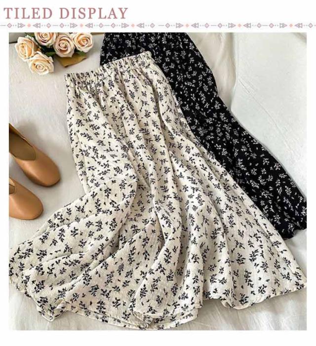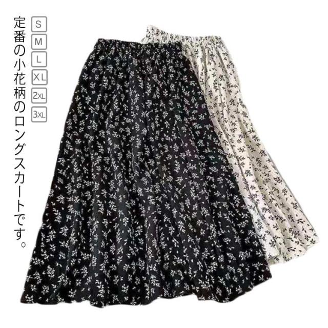 ロングスカート 夏 小花柄スカート 春 レディース 小花柄スカート aライン 体型カバー ウエストゴム 膝下 フレア 可愛い 学生 デート きれいめ おしゃれ