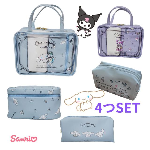 サンリオ4点セット シナモロール クロミ 化粧品入れ 収納 ケース タブレット収納 iPad インチ かわいい ポーチ バッグ 旅行小物 トラベル 旅行バッグ スーツケース 保護 軽量