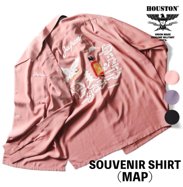 Houston ヒューストン スーベニア長袖シャツ SOUVENIR L/S SHIRT(MAP) ベトシャツ 開襟 ミリタリー カジュアル アメカジ 刺繍 地図 鳥 ベトナム 春 秋 メンズ レディース ゆうパケット1点まで送料無料 41152