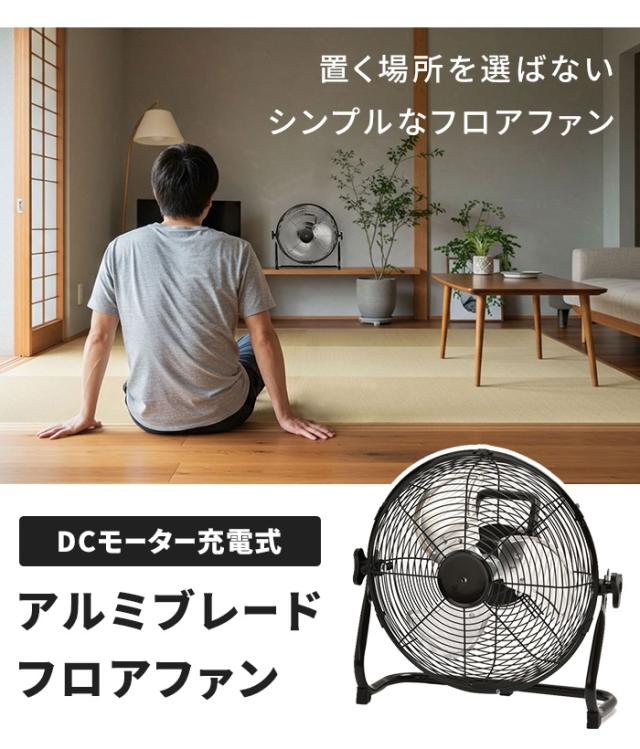 丈夫なアルミブレードとスチール製のグリルを使用した充電式フロアファン。