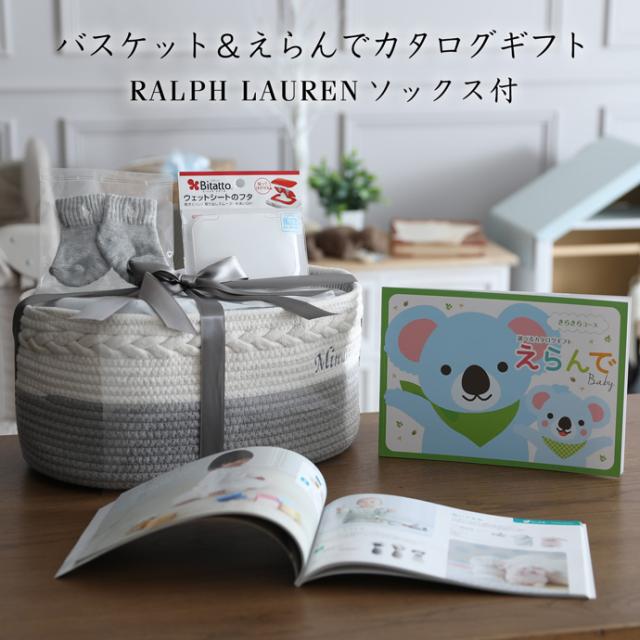 おむつケーキ バスケット ラルフローレン 出産祝い 1位 男の子 女の子 ベビー ソックス POLO RALPH LAUREN 名入れ 刺繍 名前入り ギフトセット おむつストッカー 夏ギフト 赤ちゃん 人気 お試し カタログギフト えらんで きらきら