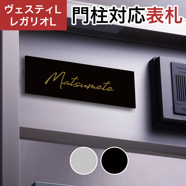 丸三タカギ 機能門柱 ヴェスティL/LN・レガリオL/LN/2/3/4に対応、オーダーデザイン表札。門柱と同色のノイズレスなサイン。黒の門柱にシルバーのプレート、シルバーの門柱に黒のプレートを合わせるコーディネートもおすすめです。同梱の両面テープで簡単に取付できます。