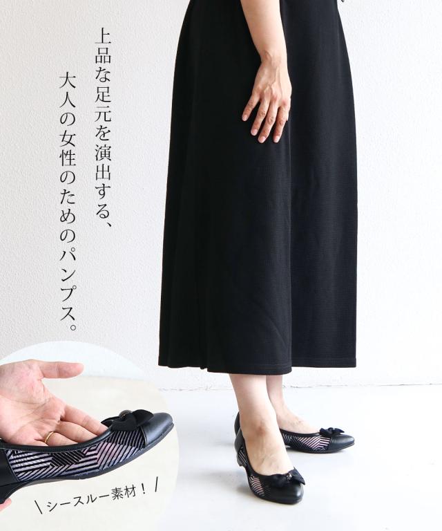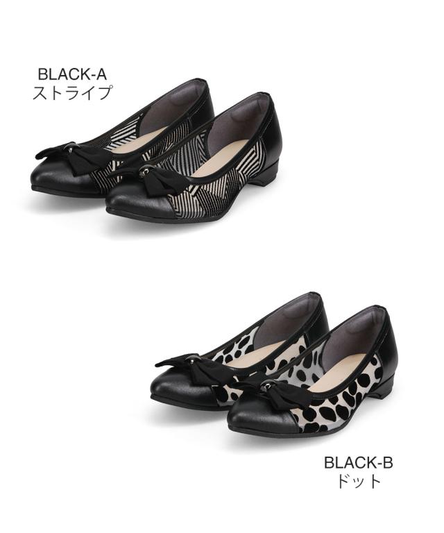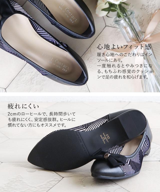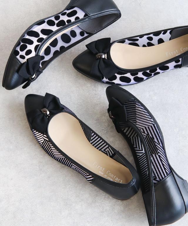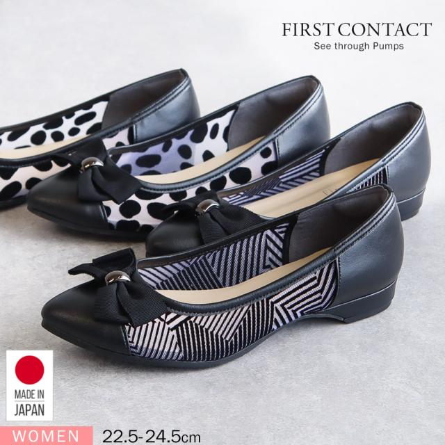 ファーストコンタクト パンプス 痛くない 柔らかい 靴 レディース 日本製 アーモンドトゥ フラット ローヒール 2cm リボン 透け感 軽量 軽い 歩きやすい 疲れにくい 滑りにくい 通勤 オフィス 春 夏 秋 冬 上品 大人 きれいめ おしゃれ 黒 ブラック FIRST CONTACT 49127