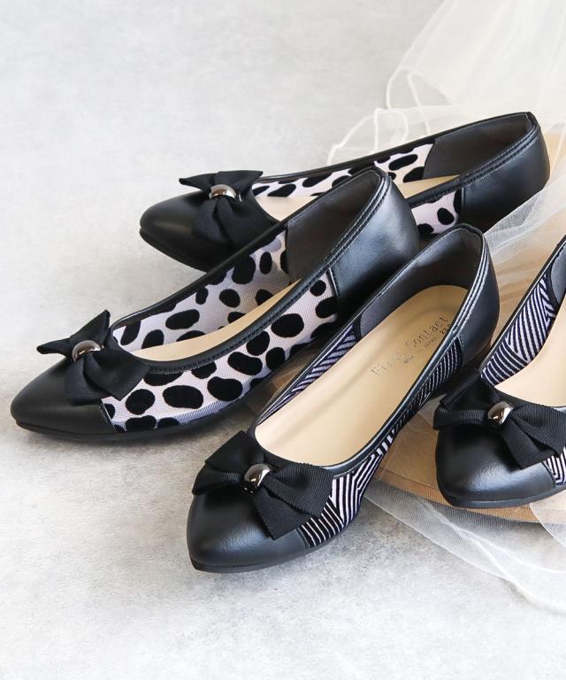 足の形が綺麗に見えるアーモンドトゥに、小ぶりのリボンが上品な可愛さを演出してくれます。