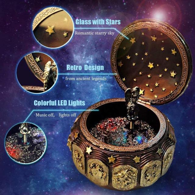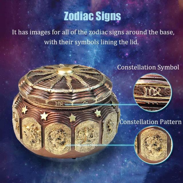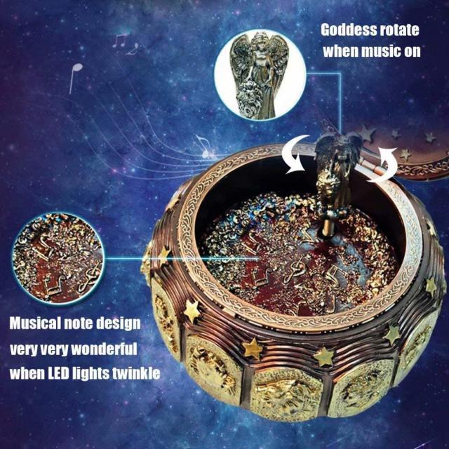 【Vintage Music Box with 12 Constellations Rotating Goddess LED lights Twinkling Resin Carved Mechanism Musical Box】