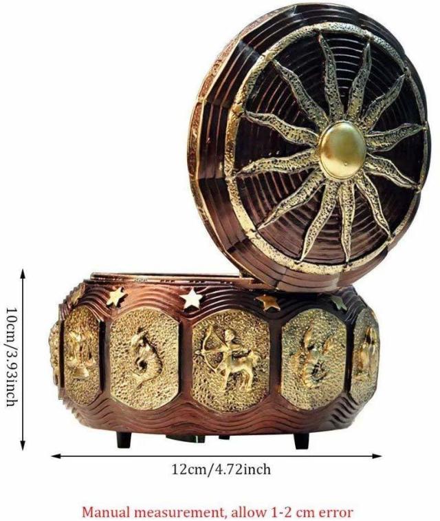 【LEDライトがきらめく、12座の星座の女神が回転する、ビンテージ風オルゴール 誕生日やクリスマスに最適な、12星座の贈物 メカニズム・オルゴール 装飾 彫像(輸入品)】