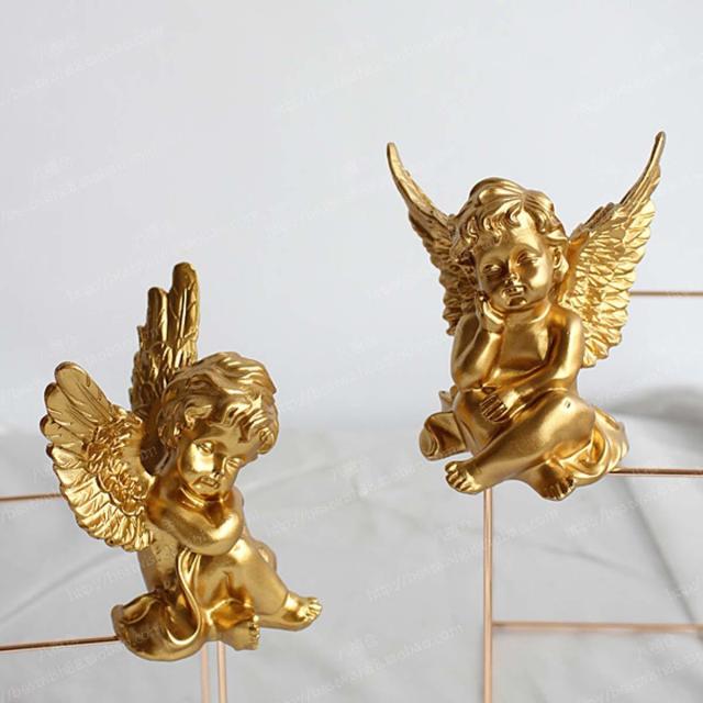 【OwMell Set of 2 Gold Angels Resin Cherubs Statue Figurine, Indoor