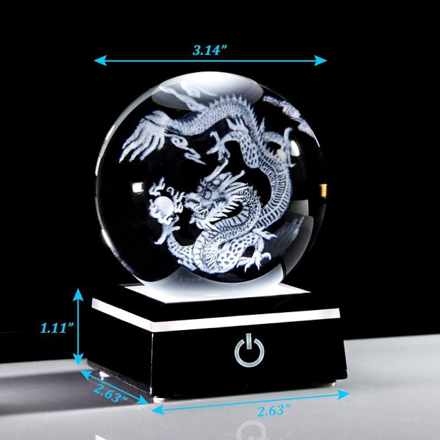 ----------------------Qianwei Chinese Dragon Decor Gifts, Dragon Statue Figurines Stuff Decorations 3D Laser Etched Halloween Crystal Balls Feng Shui for Witchcraft Paper Weights Glass Decor