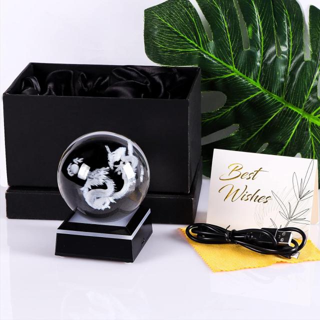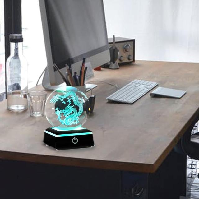 八大竜王LEDカラー装飾ギフトオブジェクリスタルガラスボール置物 ドラゴン像3Dレーザー彫刻風水開運玄関書斎輸入品