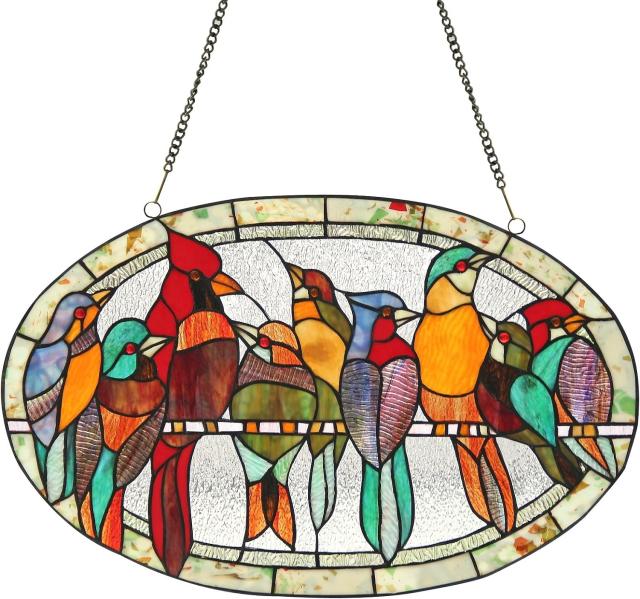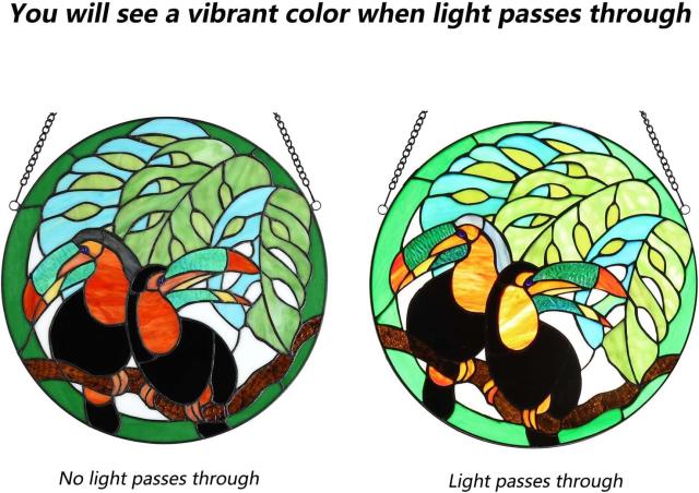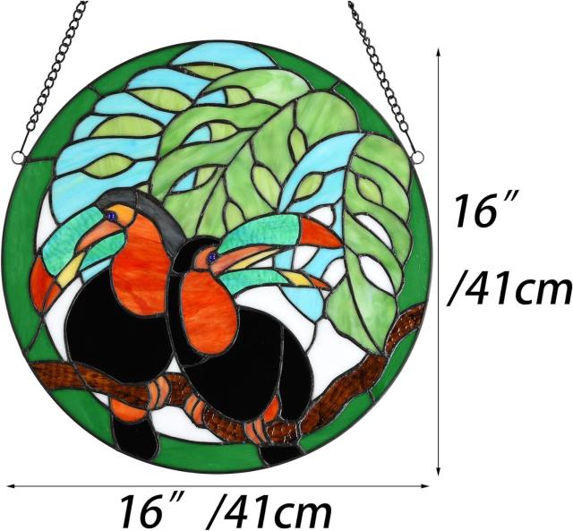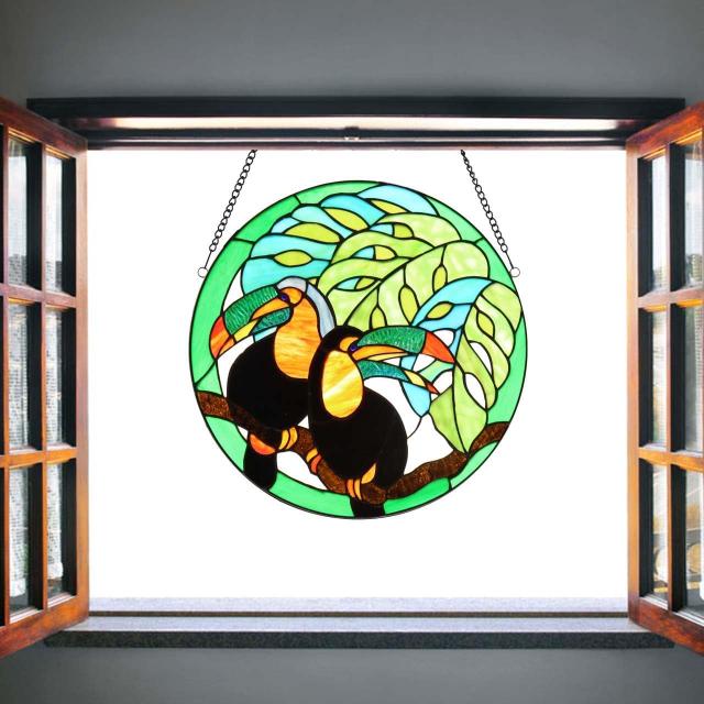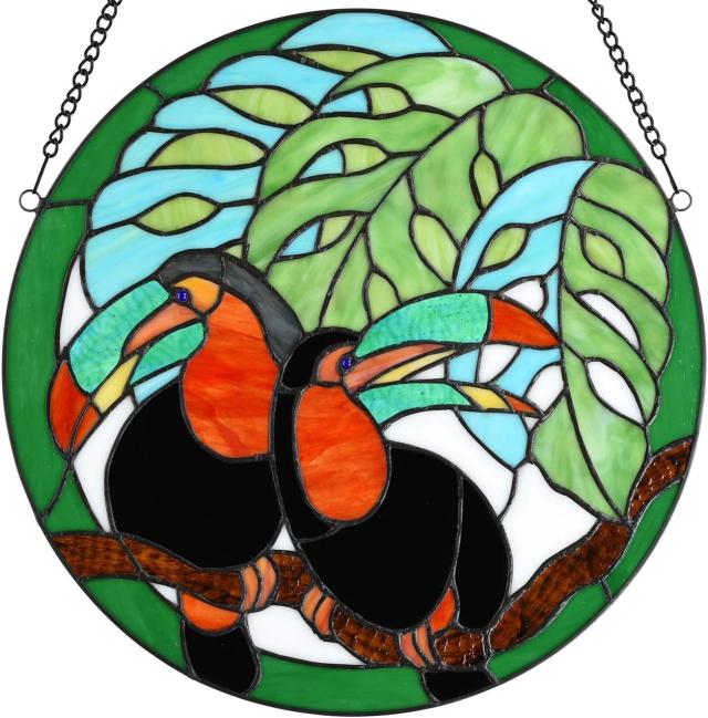 2羽のオオハシのティファニースタイルステンドグラスウィンドウパネル円形アートグラス工芸装飾贈り物輸入品