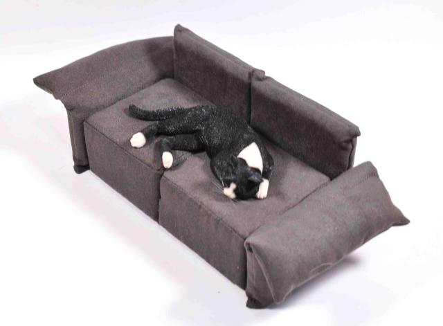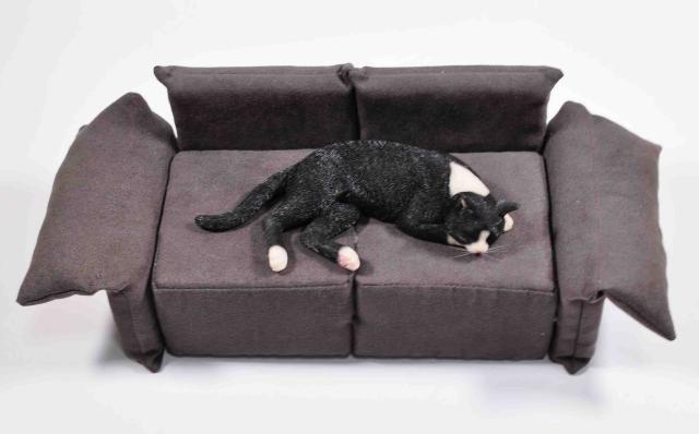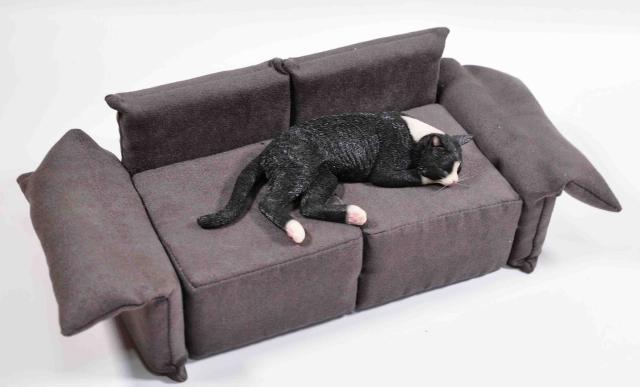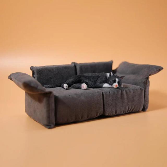 1/6 scale black cat sleeping on a sofa, realistic figure, cat animal figurine,animal statue, cat lover's gift